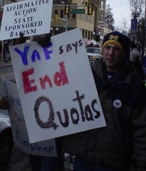 While McBride and other right-wingers see this new wave of activity as an opportunity, Ted Pranikoff, a sophomore environmental design major at UB, feels endangered. He says that he got into an altercation with right-wing protestors on campus that ended in them grabbing and yanking at his wheelchair. Pranikoff also remembers YAF members and affiliates calling him and his friends “fags” and shouting, “Cripple repent and be healed.”