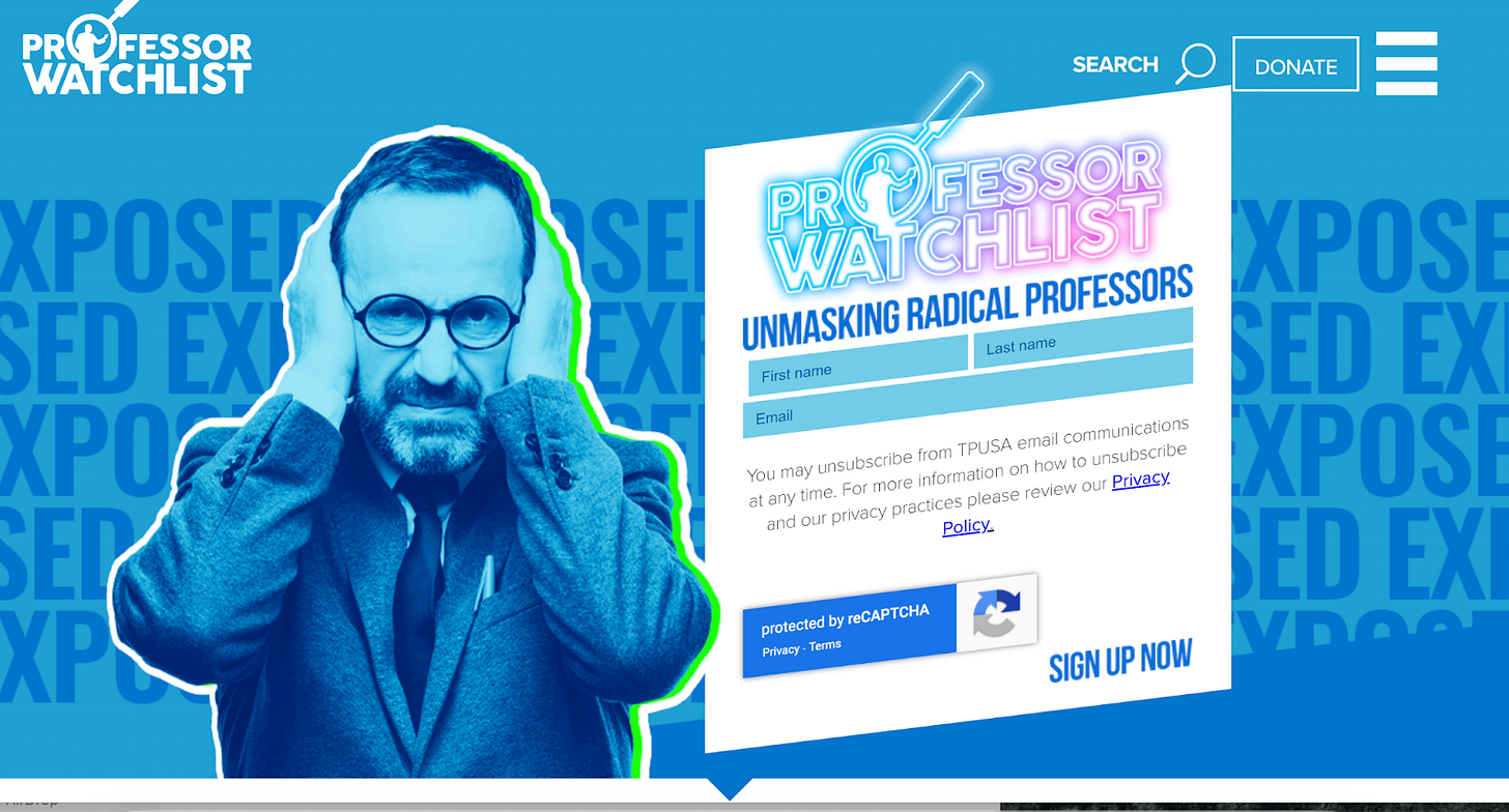 TPUSA launches the Professor Watchlist, a database cataloging “anti-conservative” college professors. Many targeted professors later face harassment. A gay professor says that when they were placed on the watchlist, they began receiving anti-LGBTQ emails on their work account. And a tenured professor at the University of Florida who was placed on the watchlist and tagged with sharing a “racial ideology” says that all four professors at her university who are on the watchlist are either a person of color or someone who identifies as LGBTQ.