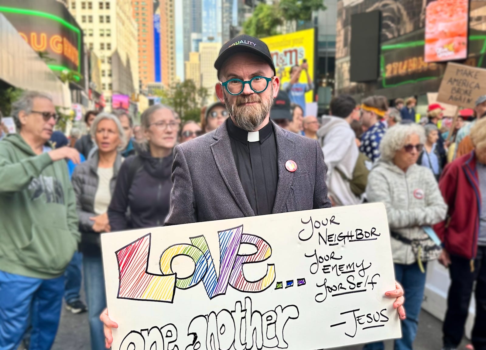 “They are trying to use the language of Christianity, but they are abusing it and misusing it constantly,” Rev. Chris Shelton, a gay pastor at the protest, told Uncloseted Media. “Our faith is all about reaching out to the marginalized, reaching out to the people who are ostracized by society and embracing them and offering love and welcome and a sense of dignity and worth. And to see any human being’s worth being denied is just a mockery of our faith.”