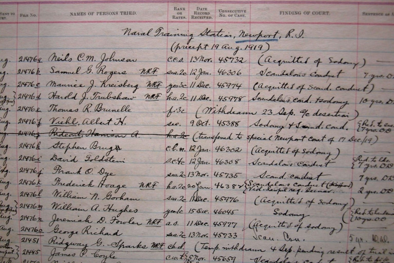 Twenty-two sailors were entrapped and charged with “deviancy” in Section A’s operations. An additional 16 civilians also got caught up in the busts, said Zane.